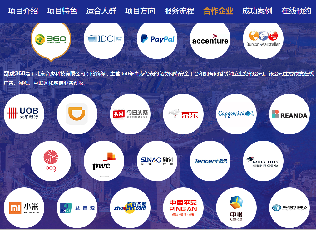 英国·名企实习项目为志向申请英国研究生的同学们提供软性背景提升平台。学生不仅可以在留学准备过程中填补软实力的空白与申请素材亮点,为申请英国大学做准备;同时在留学准备时就关注与提升未来的就业力,提前培养自己的职业兴趣、提升职业能力、清晰规划职业生涯,为归国更好地兑现留学价值做好充分准备。