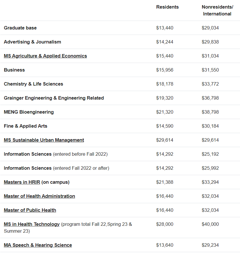 以伊利诺伊大学厄巴纳-香槟分校(University of Illinois at Urbana-Champaign,简称UIUC)的硕士为例, 一年的学费约在$30000~$50000之间。