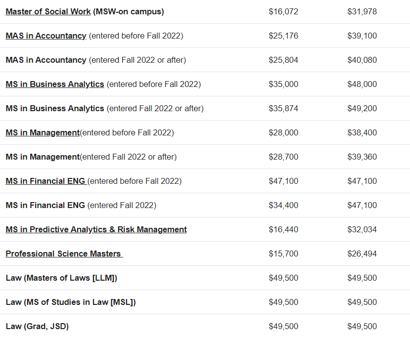 最常申的私立大学为南加州大学(University of Southern California,简称USC),我们再来看USC的硕士项目费用。