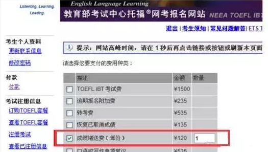 注:这个TOEFL送分流程仅适用通过教育部考试中心报名的TOEFL考试,如果是直接在ETS网站上报名的考试则不适用,比如在香港考TOEFL的,就不适用这个流程。