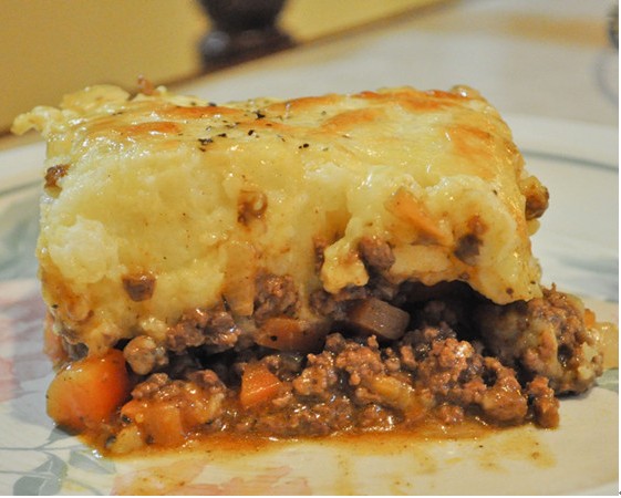 Cottage Pie,也被称为Shepherd’s Pie,是一道现在还非常流行的英国菜,肉派上面铺厚厚一层土豆泥之后再烤。可以是牛肉或羊肉。