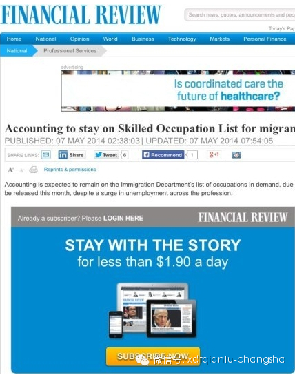 【会计好消息】会计童鞋们可以放轻松了,Australian FinancialReview(AFR)最新消息,下个财年的移民清单预计这个月就会公布,会计还会保留在移民清单上!!