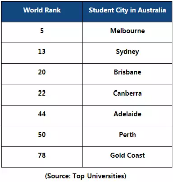 QS2017最佳留学城市排行中,澳洲7座城市进入Top 100;墨尔本世界排名前五,具体榜单如下。