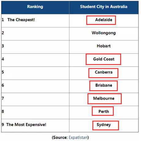 由此可见,阿德莱德的花费是最少的,黄金海岸、堪培拉、布里斯班价格较高,墨尔本、珀斯、悉尼则是澳大利亚留学花费最贵的地方,这几大城市,你最想去哪里呢?