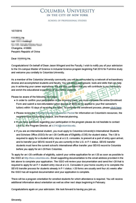 长沙新东方前途出国美国后期资深服务顾问罗敏老师介绍到:在学生托福和GRE成绩不占优势的情况下我们仍然不放弃为学生去冲刺名校!通过对学生的全方位评估、结合合理规划、精准选校定位和优质的文书分析,在年前斩获了USNEWS综合排名第4名的常青藤名校哥伦比亚大学精算专业的录取。