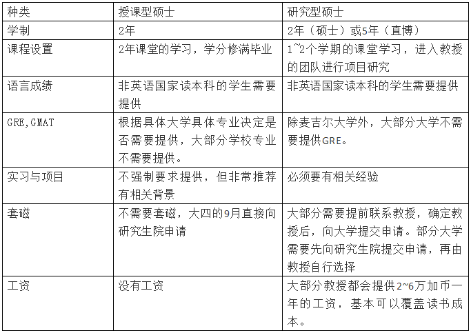 加拿大硕士分为研究型硕士和授课型硕士,一般申请的比较多的是授课型硕士,研究型硕士一般是为博士做准备的。