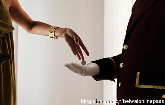 住酒店的时候,要给帮忙拿行李的、打扫的服务员一些小费,基本上也就2美元左右。早上出门的时候还需要在枕头上放上1美元小费,答谢别人的服务。如果你住的酒店是很高级的,那么就要给更多。有时候给的小费的多少,还会体现一个人的社会地位,不过像我们学生,可以根据实际情况来给,千万别装款哦,父母会伤心的。