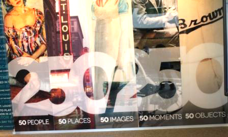 今年再次来到圣路易斯(去年暑假, 我们来了一个月考察这个城市和儿子要申请的学校),正值该城庆祝250周年历史 (1764-2014)。位于森林公园Forest Park的密苏里历史博物馆, 为此专门推出了代表这个城市历史变迁的名为5个50的展览,展示了代表这个城市的50 people (50个人物), 50 places (50个地方), 50 images(50个影像), 50 moments(50个时刻), 50 objects(50个物品) 。
