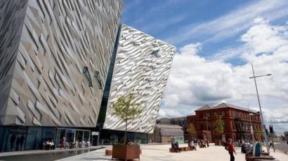 泰坦尼克号贝尔法斯特纪念馆是一个旅游景点 ,同时也为了悼念在那起海难中不幸遇难的乘客。它的隔壁就是一座造船厂