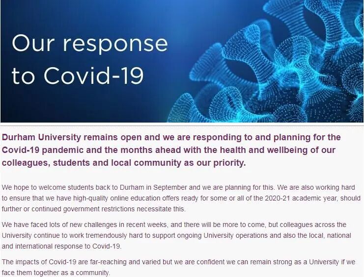 杜伦大学计划于10月5日开始线下授课。同时,官方回应也表示具体的授课方式将根据政府政策作出调整,高质量的线上授课已经准备就绪。