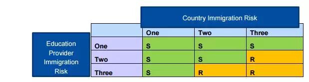 在新政SSVF框架下,移民局评审学生签证的主要因素有两个:申请人国籍的风险等级(Country Risk level)与澳洲院校风险等级(Provider Risk level),两者都分为低风险(level 1)、中等风险(level 2)和高风险(level 3)。