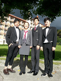 大一的时候半个学期要做服务, 半个学期要在厨房做实操课程, 当时做服务很辛苦,大概早上六点半左右要签到,一开始餐厅做早餐,然后中午和晚上分别是一次做法餐一次做cafeteria ,顺序每周都换。有时候早上还有房务服务 记得前几次如果晚上做法餐可能要到晚上十点半才能结束,很累,但是大家都咬牙坚持了,这是团队, 谁都不能掉队。通过一个学期的学习,我们学到了好多在餐厅和厨房的实践技能,为之后的实习打下了坚实的基础。