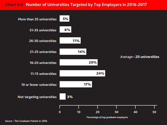 “只有极少数企业的应届生职位向英国140多所大学的毕业生敞开大门,多数企业只会把招聘目标锁定在特定大学的毕业生。”