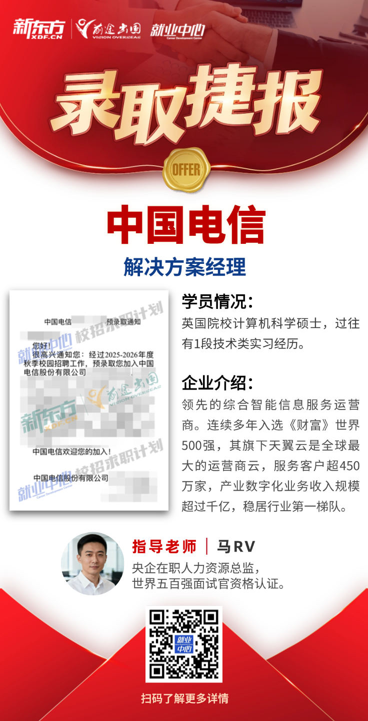 · 厘清投递思路:个人经历符合央国企用人偏好;有海外经历和优秀的英语能力适配外企用人要求。按照优先级投递:央国企、外企、私企。
