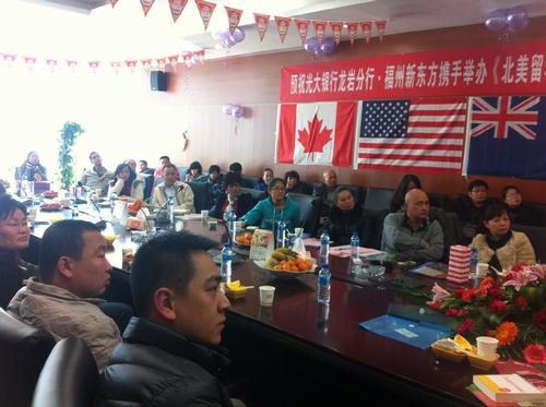 12月21日,在火热的圣诞节前气氛中,福州新东方前途出国携手光大银行福州分行来开了北美留学盛宴的序幕。上午9时许,龙岩地区的学生与家长陆续来到会场,在福州新东方前途出国资深留学顾问的细心陪同下,相互交流着有关北美留学的信息。上午10点,前加拿大教育局官员,现任福州新东方前途出国总经理张龙霁先生在家长的掌声中上台,据悉,张龙霁先生就加拿大及美国地区的留学政策及申请向在座的家长及学生进行了详细的分享。张龙霁先生认为,留学已经呈现出大众化,低龄化的趋势,特别在美,加两国趋势尤为明显,美国优质的教育制度,加拿大优质的移民潜力是趋使众多家长和学生向往留学的原因。诚然,面对愈来愈庞大的留学大军,提前规划留学是保证精力有效投入最理智的方式,家长在制定留学计划的时候,一方面要根据自身的条件安排,另一方参考具有业内权威认可的留学中介也是一种比较稳妥的方法。张老师就留学的问题与家长们进行了相当完善探讨。