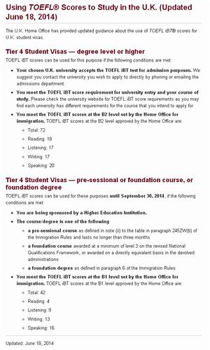 ETS官方最新消息:各位要去英国留学的同学们,现已收到ETS官方的消息,TOEFL的成绩重新应用于英国留学申请签证当中,但是请注意需要提前联系所申请的英国院校是否接受托福成绩并且提前了解对于托福成绩有怎样的要求。