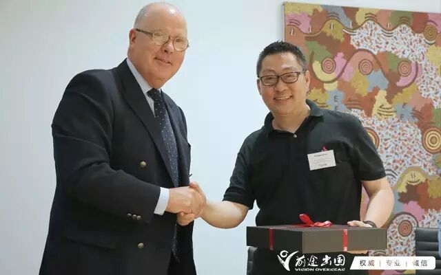 3月23日,星期一,悉尼艳阳高照,由新东方教育科技集团执行总裁,新东方前途出国咨询有限公司总裁周成刚所带领的澳大利亚探寻团队,一行11人受邀前往麦考瑞大学进行访问及交流。S Bruce Dowton校长亲切接见了代表团成员,他说麦考瑞大学建校不过50年,但其发展速度,尤其是近些年的发展速度十分惊人。这并非偶然,学校投资10亿澳元改善并新建基础设施及设备。其中包括一座高科技的图书馆,一间先进的医院,一个听力中心,这些为学校的研究人员,教师和学生提供了良好的支持。但他同时强调,麦考瑞大学最重要的资产就是人,这比土地或设备重要得多,特别是像周成刚老师这样的优秀的毕业生才是麦考瑞大学的核心资产之一。