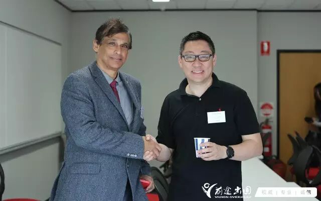 周成刚的导师,现任文学院院长、Nanren Chitty 教授发表了欢迎讲话,欢迎麦考瑞大学杰出毕业生周成刚先生一行的来访,并向大家介绍了麦考瑞大学在教学,科研,设施,创新等领域的卓越表现,以及这些年学校突飞猛进的变化。得悉周成刚老师毕业18年后第一次回到母校,Chitty教授询问周老师的感受。周老师表示变化很大,火车直通校园后学生上下学出行就更加便利了。回忆起当年留学的时光,打工读书思考未来的岁月,感叹留学生活对于人的成长的确是全方位的一种锻炼,是一段人生必不可少的经历。在与Nanren Chitty 教授沟通交流后,周老师主动提出为Nanren Chitty 教授的研究项目提供经济支持。这也是毕业学生们回馈母校,感恩老师栽培的表现。