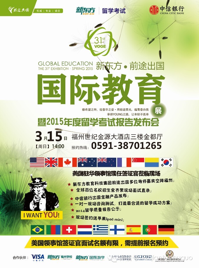 基于学子们的迫切需求,福州新东方前途出国携手中信银行福州分行将于3月15日在世纪金源大酒店举办第31届新东方春季国际教育展,