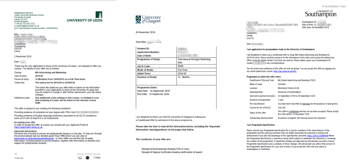 今年6月毕业于中山大学酒店管理专业,获得多所海外优秀院校offer: