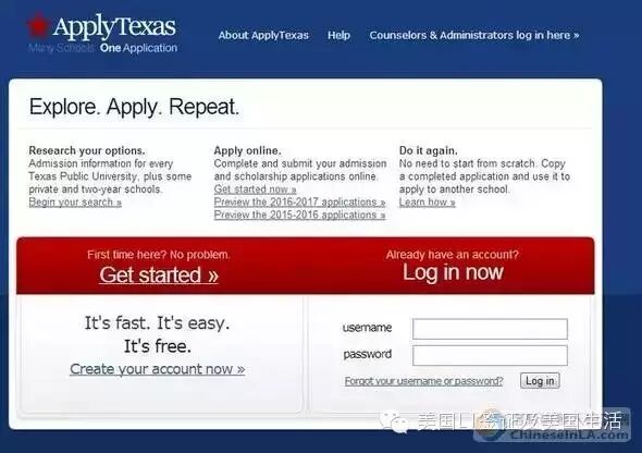 一般网页上都会有明显的Apply Now丶Apply Online,填写用户名和密码就好了。