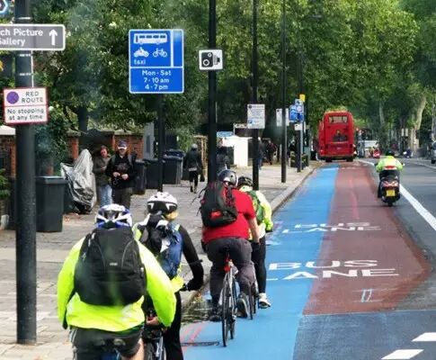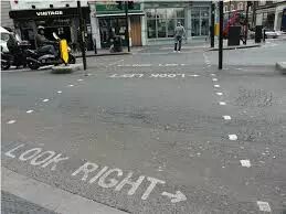 当穿越马路时,要特别小心,因为英国的机动车都是靠左行驶的。要切记,穿越主要路口,需留意地面上“注意左边和注意右边”的标志提示。