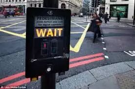 有意思的是,英国大部分人行道都不是斑马线那个样式。而是用虚线框出来的人行横道。很多地方用 “流氓灯”代替红绿灯,“流氓灯”是圆圆的灯罩,黄色的。这种灯是指在这个路口过马路时,行人优先,车辆必须要让行人。很多新生刚过来时不懂这个灯的含义,在“流氓灯”旁边一直等着让车先开过去,而司机则在这个路口停着等着行人先过去,气氛非常尴尬。当过马路时遇到车里面的司机立起手掌示意让行人过马路的时候,可以向司机点点头以示谢意。