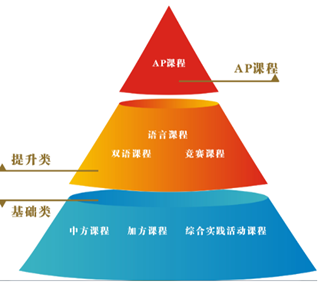 中加课程设置从培养“复合型国际化人才”的中心目标出发,发展学生的“核心素养”和“圆方精神”,致力于学生“全面发展”的基础上,进一步促进学生的“个性发展、自主发展、特长发展”,将课程分为四大板块,具体为“国家课程,加拿大课程,国际AP课程、选修活动课程”,并做到课程之间的深度融合。