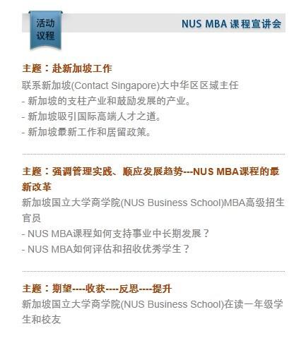当您心存向往,却不知如何行动时,请参与新加坡国立大学(NUS)MBA Information Session(上海、北京、广州、深圳),聆听新加坡政府机构驻中国负责人和NUS驻中国负责人为您提供最官方和权威的信息。