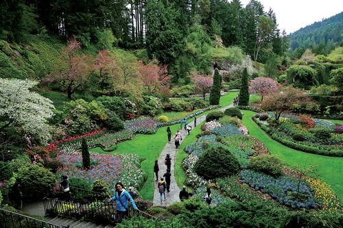 维多利亚有一座远近闻名的宝翠花园,如果游维多利亚而没到宝翠花园一探究竟,可说是入宝地却空手而归。宝翠花园占地12公顷,园中积土成山,有小径及石级可登。旁围曲栏,栏外斜坡,均有名花覆盖,山下有曲径环绕,临人工小湖,有山泉奔流而下,水花直注水中,淙淙有声。内花园尚有温室花房,里面布满各种名贵鲜花,分叠多层,犹如花山花岛。“水舞”喷泉,亦为园内胜景,夜间彩色灯光与群花相辉映,喷泉的水花,竟能合着音乐节拍和灯光闪动起舞,故有“水舞”之名 。