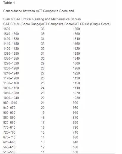 ACT和College Board开了个会(我也不知道他们开会了没,总之就是达成了共识),然后ACT官方给出了SAT与ACT的成绩换算参照表。