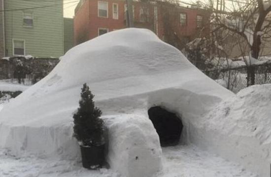 暴风雪重创美国纽约市观光业,但1名纽约客突发奇想,把大雪化为摇钱树,在自家后院打造1座冰屋,甚至在房屋出租网Airbnb打广告说2人住1晚200美元。(图片来源网络)