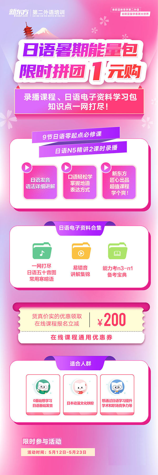 日语暑期能量包限时拼团1元购-新东方前途出国