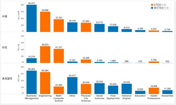 比如,中国留学生青睐的商科以及STEM专业,以Engineer专业为例,单年赴美学习Engineer的中国学生就已将近6万,一年各国留学生总和是17.5万。