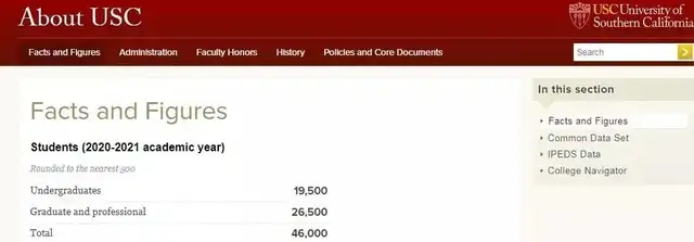据官网表示,2020年秋季总注册学生为46,000人,其中本科生19,500人,研究生26,500人,国际生占总注册学生的22.6%今年南加大申请递交总数为59,712,录取了9,618人,录取人数相较于去年增加2000人,录取率为16.1%。