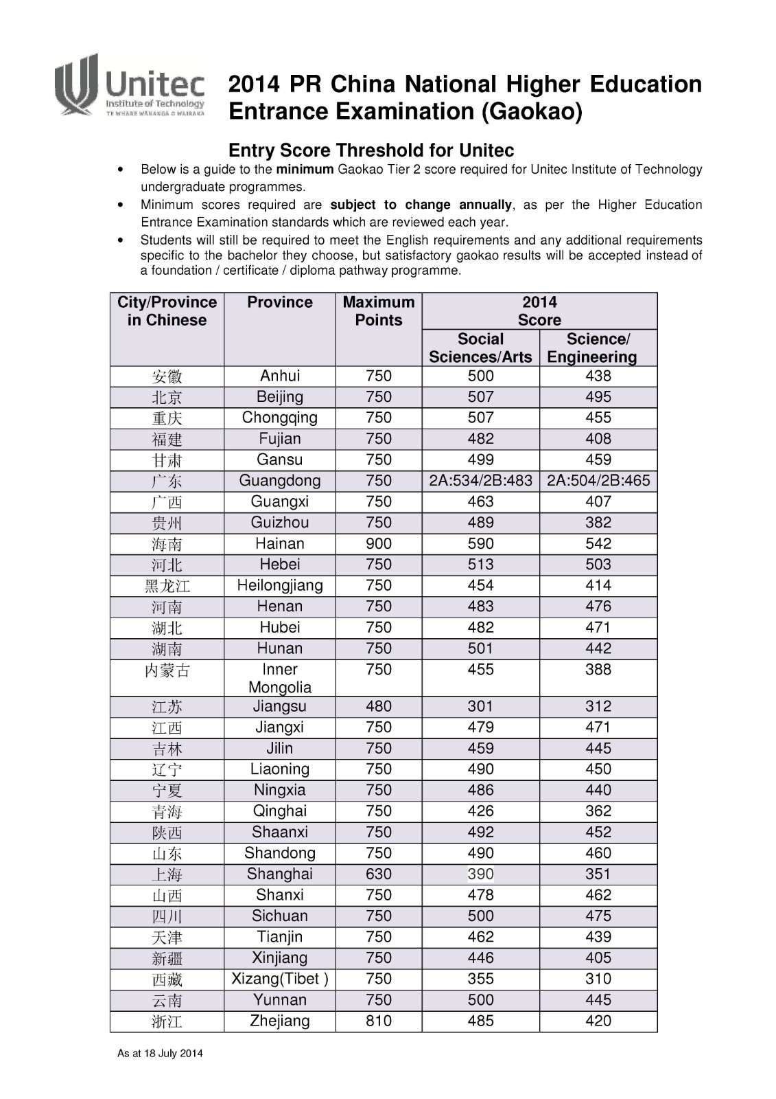 2014新西兰Unitec理工学院高考成绩录取标准出炉。新西兰目前有两所学校承认中国高考成绩,分别是新西兰梅西大学和新西兰Unitec理工学院。总的来说由于新西兰Unitec理工学院是一所学院其录取分数线也不是很高,只要学生达到二本线就可以。下面就来告诉各位同学今年2014新西兰Unitec理工学院高考成绩录取标准。