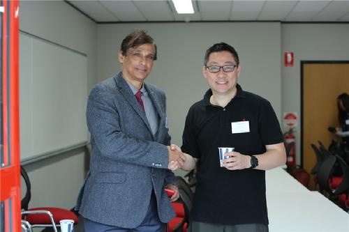 周成刚的导师,现任文学院院长、Nanren Chitty 教授发表了欢迎讲话,欢迎麦考瑞大学杰出毕业生周成刚先生一行的来访,并向大家介绍了麦考瑞大学在教学,科研,设施,创新等领域的卓越表现,以及这些年学校突飞猛进的变化。得悉周成刚老师毕业18年后第一次回到母校,Chitty教授询问周老师的感受。周老师表示变化很大,火车直通校园后学生上下学出行就更加便利了。回忆起当年留学的时光,打工读书思考未来的岁月,感叹留学生活对于人的成长的确是全方位的一种锻炼,是一段人生必不可少的经历。在与Nanren Chitty教授沟通交流后,周老师主动提出为Nanren Chitty 教授的研究项目提供经济支持。这也是毕业学生们回馈母校,感恩老师栽培的表现。
