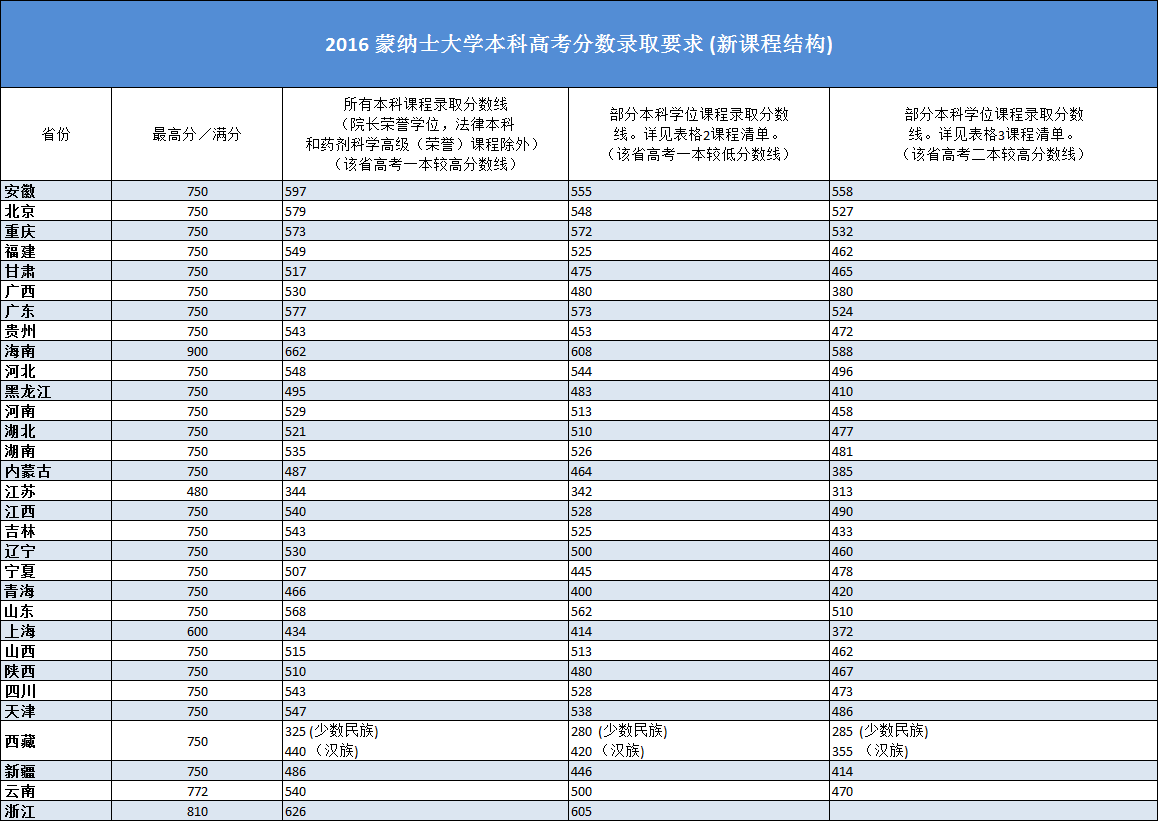 申请留学澳洲蒙纳士大学部分本科学位课程录取分数线,云南2015高考一本线较低分数线:500分