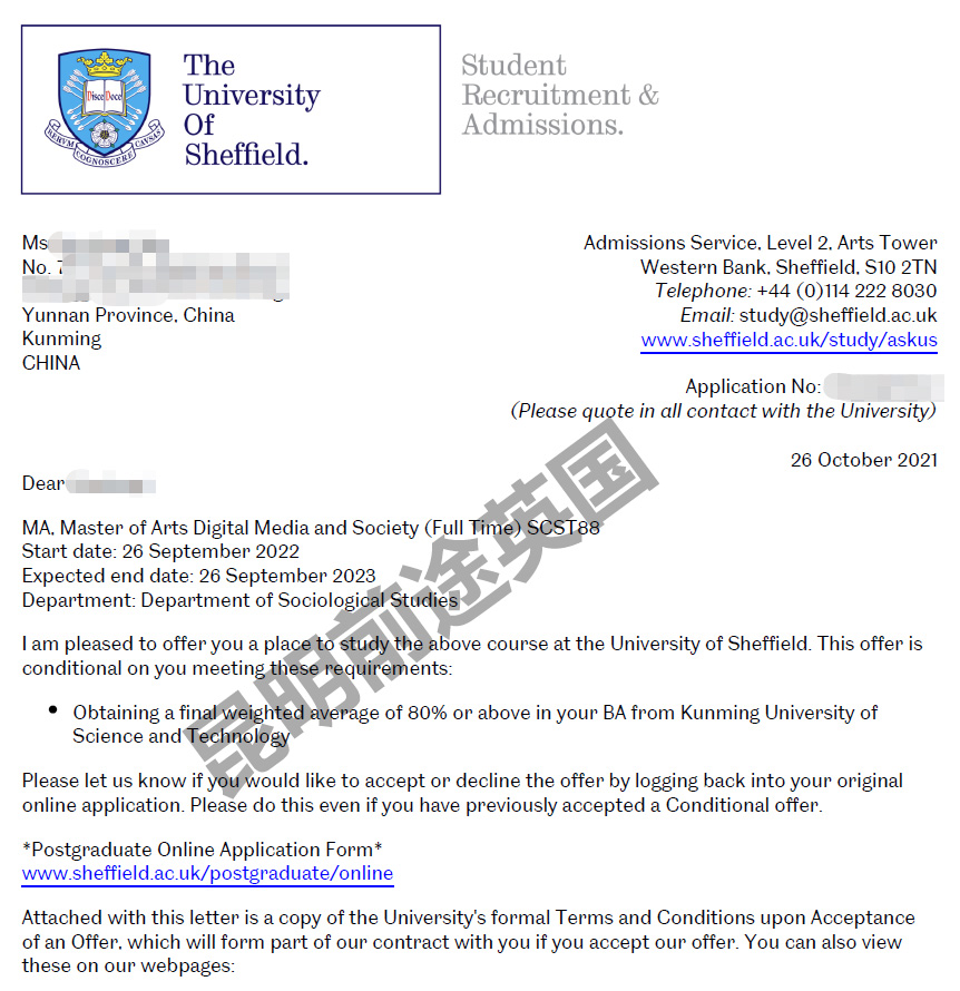 谢菲尔德大学 MA, Master of Arts Digital Media and Society (Full Time) 数字媒体和社会 硕士