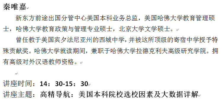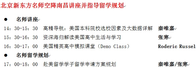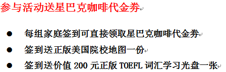 各位家长们,小编现在给大家发布好消息啦,新东方前途出国联合多家美国院校,为江西学子打造美国专场的留学盛典。此次教育展,新东方总部美国本科业务总监、哈佛大学教育管理硕士秦唯嘉老师,以及美国高中业务经理张寒老师亲临现场,同时数所国际优质院校招生代表齐聚现场实现全球院校的同步面试申请。感兴趣的家长们请预约参加,现在点击“我要预约”,现场参加活动即可获得星巴克咖啡代金劵、价值200元的TOEFL词汇学习光盘以及正版美国院校地图。