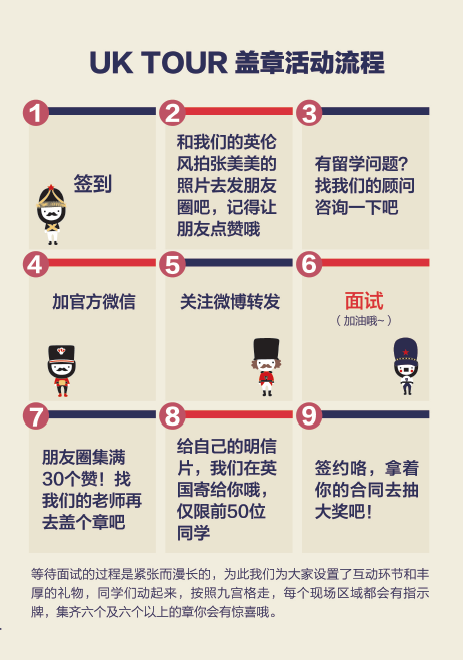 UK TOUR:UK Top Outstanding Universities’ Recruitment,是新东方前途出国英国条线出品的,面向研究生申请的一年两届高端大型巡回面试展会。本活动旨在通过邀请英国排名前30的名校,为我们的学生现场做英文面试指导、解答关于学校及课程疑问、并给出适合学生的申请建议,以便学生在今后的申请中可以扬长避短,更有把握地在未来取得自己心仪院校的offer。