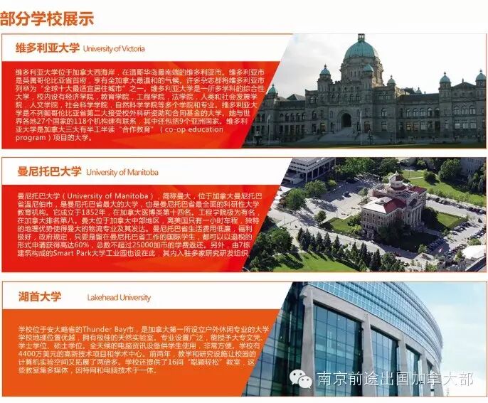 湖首大学Lakehead University成立于1946年,称为Lakehead技术学院,1956年改为文理工学院,1965年正式成为大学,是东北地区的一所充满活力的新型大学,开设的课程广泛、水平多样,从高级国家文凭,本科学位,直到教学类硕士课程,还可获得达到博士水平的研究机会。学校与工商业界有长期联系的传统,使得课程设置与雇主的要求密切结合。许多本科课程的组成部分还包括在英国或外国工作实习一段时间。本校有著骄人的学术成就,为数不少的毕业生和文凭获得者在世界舞台上创造着成功的业绩。大学全日和非全日在校学生共一万六千名.