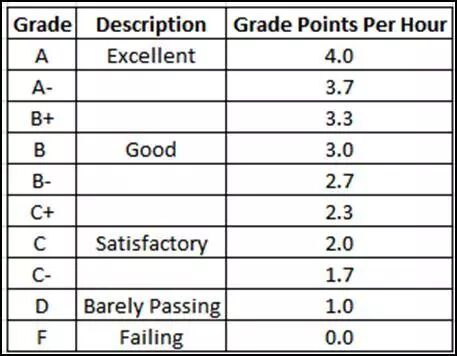 如果一个学生拿到了4个B,那么他的GPA= 3.0 (x 4)= 12.0/ 4= 3.0