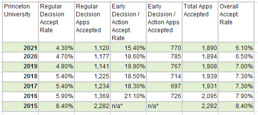在2021届学生中,普林斯顿大学录取数量最少为1,890人,而录取率为倒数第三,仅仅高于哈佛与哥伦比亚大学,普林斯顿大学是公认的难以申请的美国大学。并且本届也是普林斯顿大学录取率最低的一年。