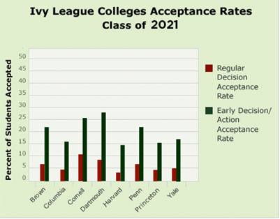 而早申请录取率超过20%的大学还有布朗大学21.9%,与宾西法尼亚大学22.0%,而他们的常规录取率为6.9%和6,8%。从上述数据可以看出要申请常春藤大学,以早申请的方式进行十分必要。