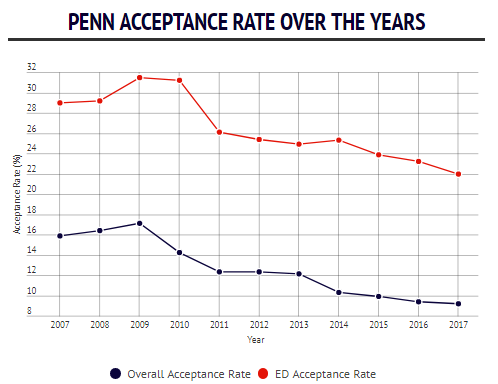宾夕法尼亚大学2021届录取学生总数为3699人,总体申请数为40,413,录取率为9.2%,本届是宾大历史上录取率最低的一届。而宾大的早申请录取率为22%,远高于常规录取率6.8%