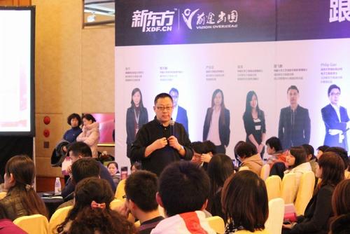 上周六,国内首次留学高端公益巡讲“怒放的青春——全球名校海归精英巡讲”南京站活动在金陵饭店隆重举行,主办方新东方前途出国的CEO、新东方教育科技集团执行董事周成刚亲率60位海外名校精英组成阵容强大的“名师团”来讨论“名校-梦想-未来”的主题,这在国内尚属首次。会后,记者采访了本次活动的发起人周成刚,谈到此次活动的目的,他说:“我们希望能通过这些名校留学精英的自我展示,以及和同学们的深入讨论,让现在有志于留学的学生们少走弯路,也希望改变现在留学行业一些浮躁的现象。”