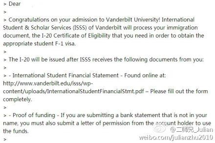 范德堡大学录取offer