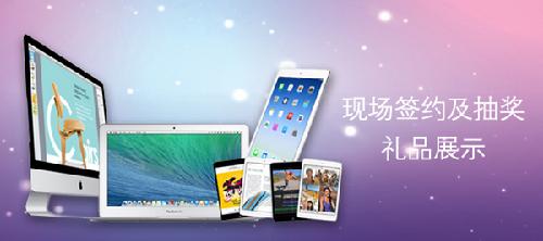 现场签约即可现场进行抽奖,苹果一体机、苹果笔记本电脑、IPAD等海量苹果产品等你来拿,100%中奖!等概率抽奖,奖池奖品:苹果一体机1台、苹果笔记本电脑2台、IPAD air 20台、mini pad2 30台。