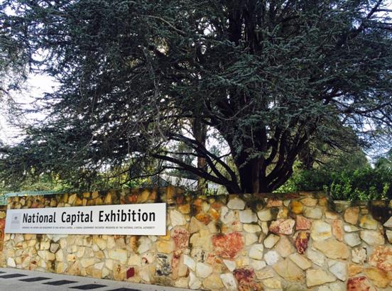 National Capital Exhibiton三个字就引入眼帘。不过更抓住我眼球的反而是它旁边一条安静的湖。比起其他城市来,周一的堪培拉显得更加安静一些,满地的叶子提醒我们澳洲已然入秋,只有偶尔几对老年夫妇绕着湖跑步骑车锻炼身体。我拿着相机,按下快门,记录着这一切美好的景色。